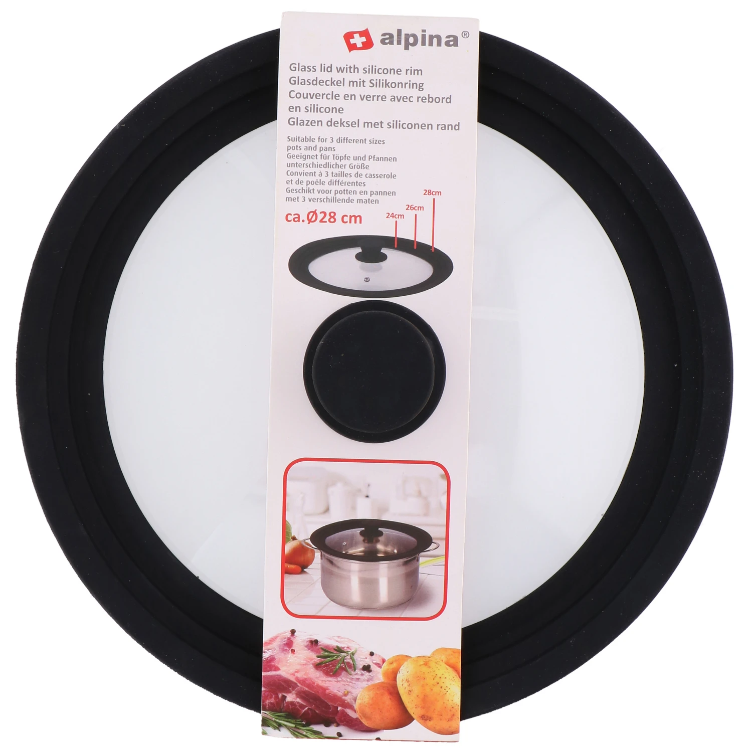 Alpina Deksel 28 cm; Glas met Siliconen Rand