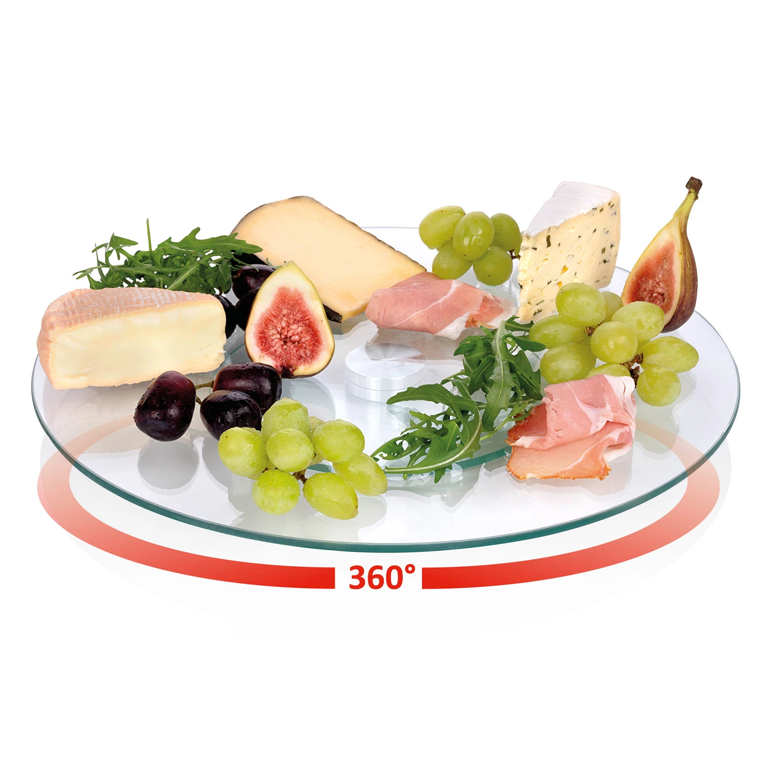 Serveer al je taartjes, gebakjes, snacks of andere lekkernijen op deze roterende serveerschaal van Alpina! Deze glazen schaal heeft een diameter van 32 cm en kan 360 graden draaien. Dankzij de anti-slip voetjes blijft de serveerplaat altijd op zijn plek.